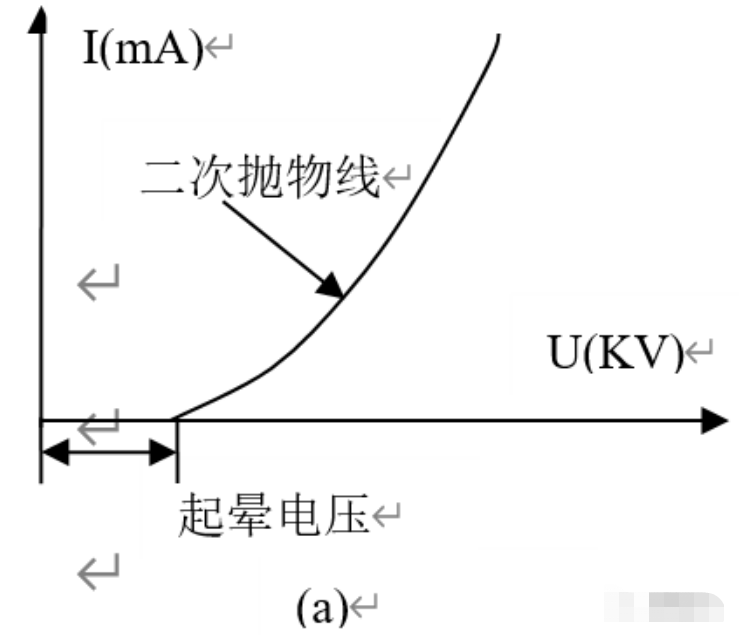 當(dāng)達(dá)到起暈電壓時(shí),才出現(xiàn)起暈電流,隨著電壓升高,電流增加逐漸加快,在高壓范圍內(nèi),電壓稍有升高,電流大幅度上升。